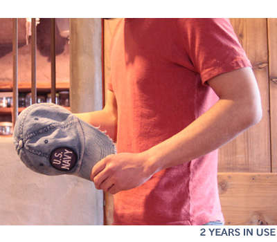 能夠期待素材的経年變化的牛仔帽。帽檐稍长而帽子深度較淺是這款牛仔帽的特征。帽檐的芯比較堅硬,不易變形是它的一大賣點。