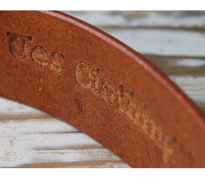 皮带扣裡都刻有UES品牌的名字。皮带扣采用经研磨加工变色的黄铜。为使长年耐用,使用了加厚皮革做成了牢固的皮带。 另外在皮带涂上蜡,给人一种更柔和的感觉。一边使用,一边感受皮带扣和皮革各自具有的经年变化。