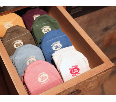 使用《三线》制成的袜子。从穿著的舒适度和袜子耐久性,很多客人都选择一次性购入多种不同的顏色。因为色彩选择丰富,以当天的心情选择喜欢的顏色吧。