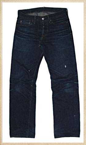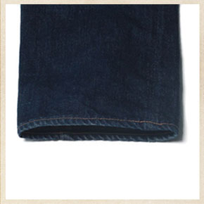 | Fabric got shrink by laundry. So the denim shape looks slim. Whole indigo colors become lighter. Especially fading parts become whiter so beautiful contrast is shown. |
