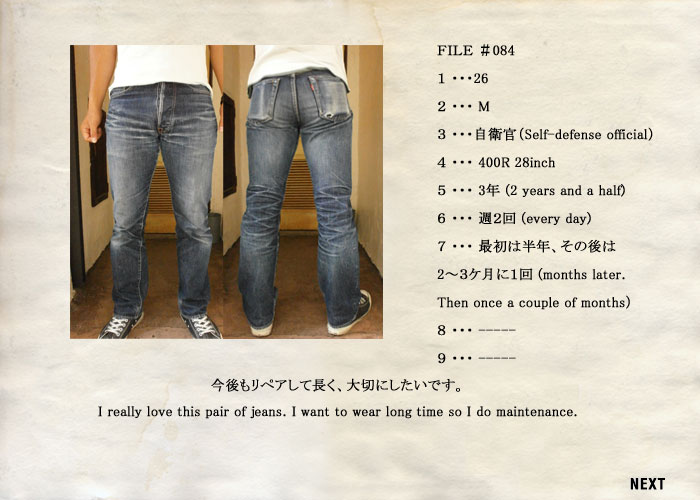 年齢 性別 職業 デニムの品番、サイズ デニムをスタートしてどのくらい? デニムを穿く頻度洗濯頻度